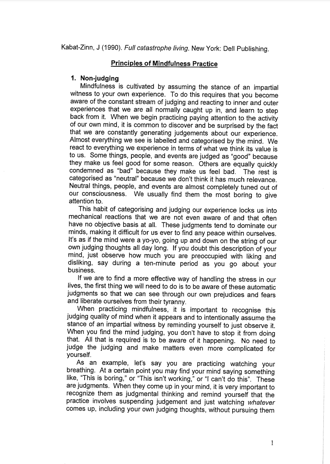 Mindfulness in cultivated by assuming the stance of an impartial witness to your own experience.